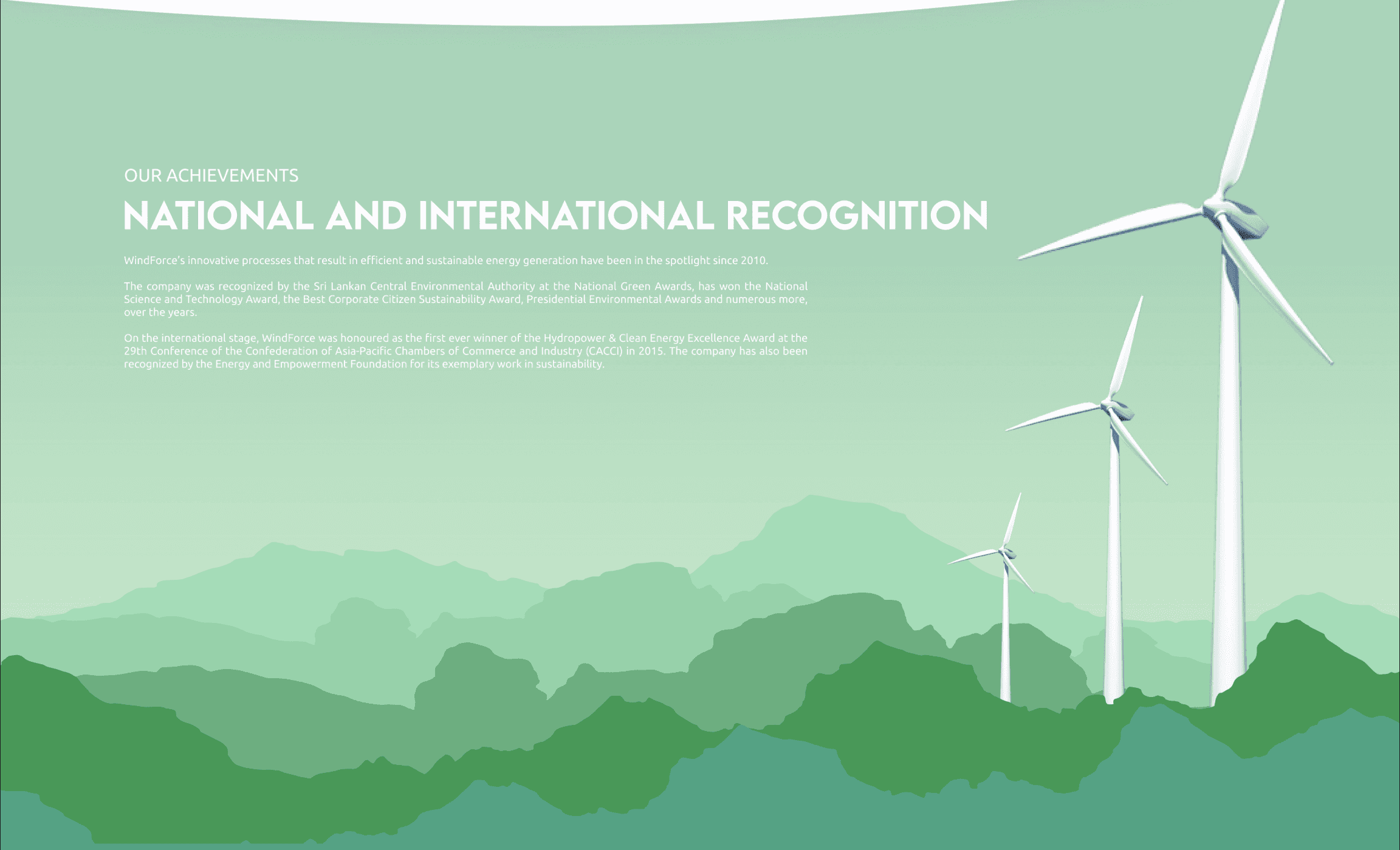 WindForce PLC is a market-dominant developer and operator of wind, solar, and hydro power plants, managing the full EPC process and operating internationally (Sri Lanka, Pakistan, Uganda, Ukraine). Their operations commit to UN SDG 7 (Affordable Clean Energy). I did this project a long time back hence the limited resources and knowledge :/